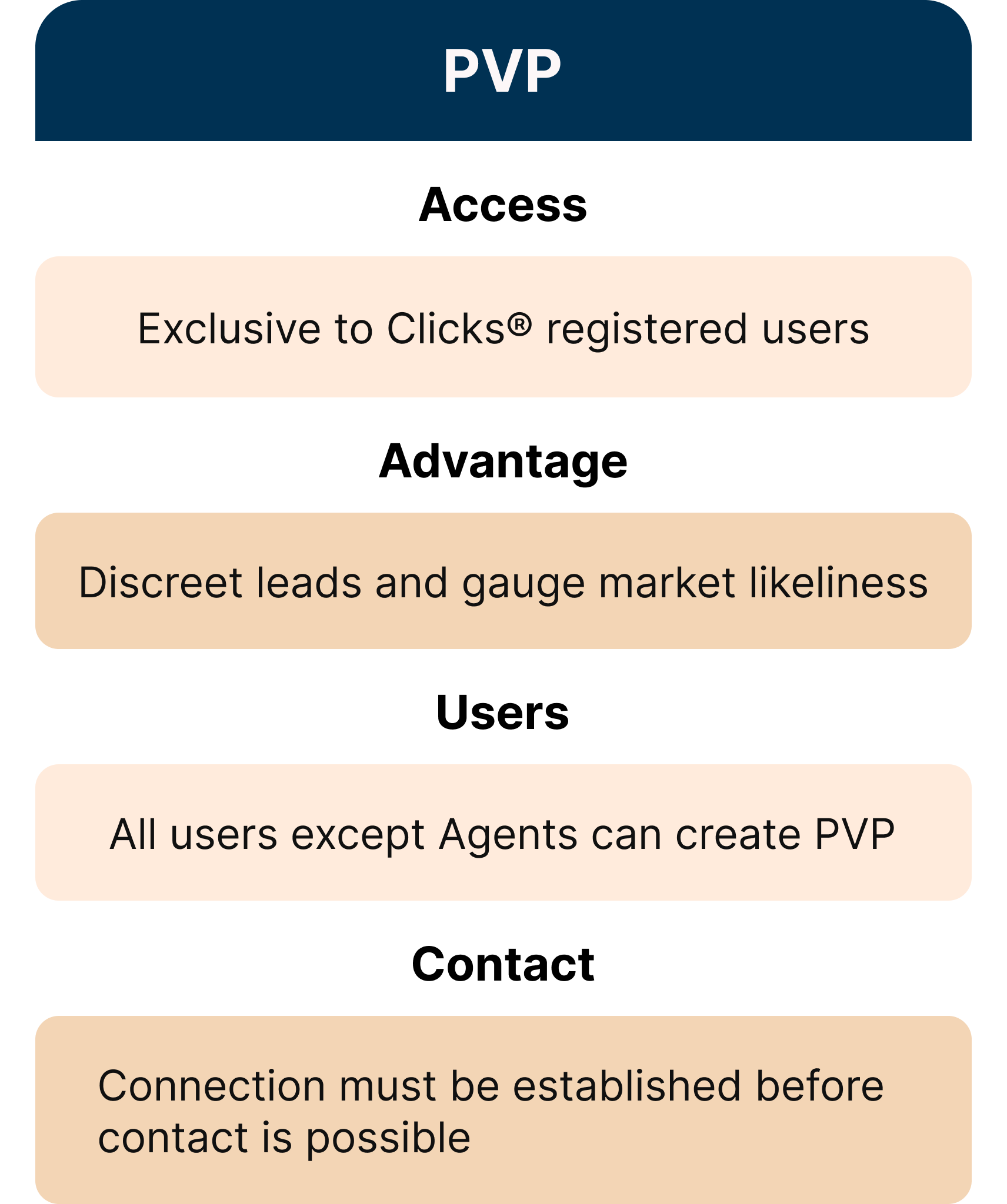Utilize your PVP as a preliminary listing, gradually adding details as needed. Convert it into a complete listing with just a few clicks when you’re prepared to sell.